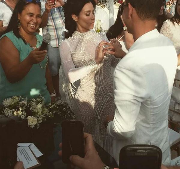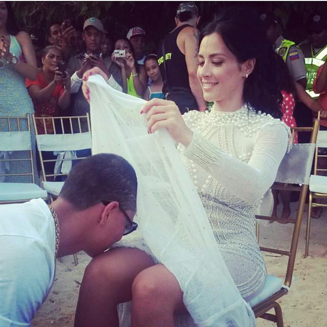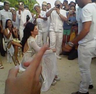 [dropcap]A[/dropcap]l llegar la tarde de este domingo, la vedette venezolana Diosa Canales se lanzó al agua. La boda se realizó en Tucacas, y Canales lució un vestido bastante tapado. Después de dar el “Sí”, los presentes le cantaron cumpleaños.