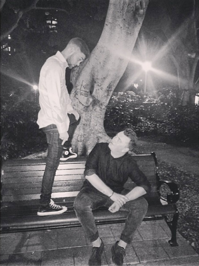 Además, lo hicieron cumpiendo las leyes de las redes sociales que obligan a publicar de todo viaje una #selfie y una foto haciendo alguna tontería (En este caso, Jonathan parado sobre un banco de un parque mirando a Sam Smith).