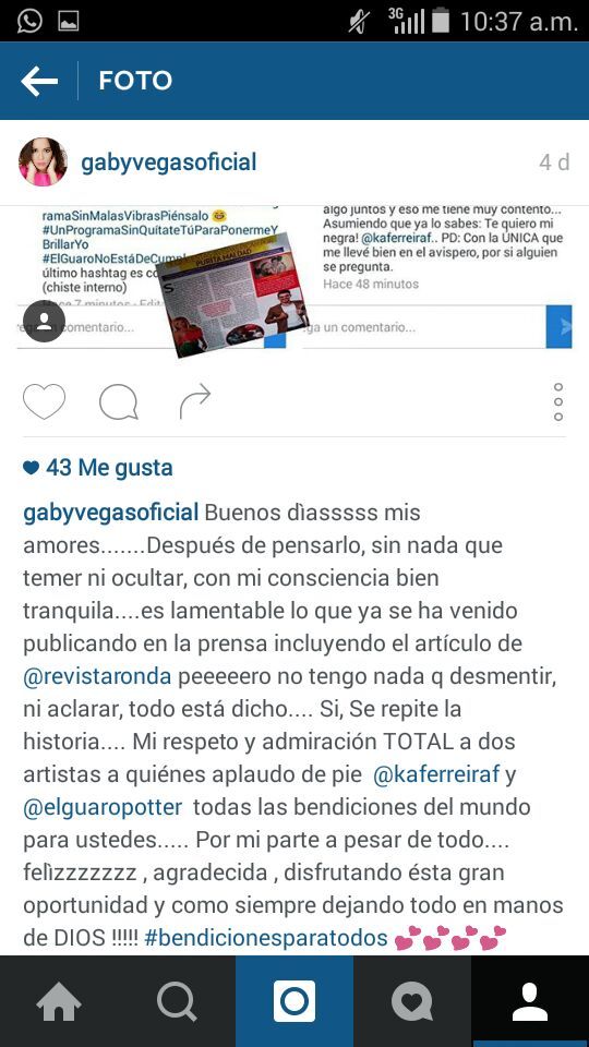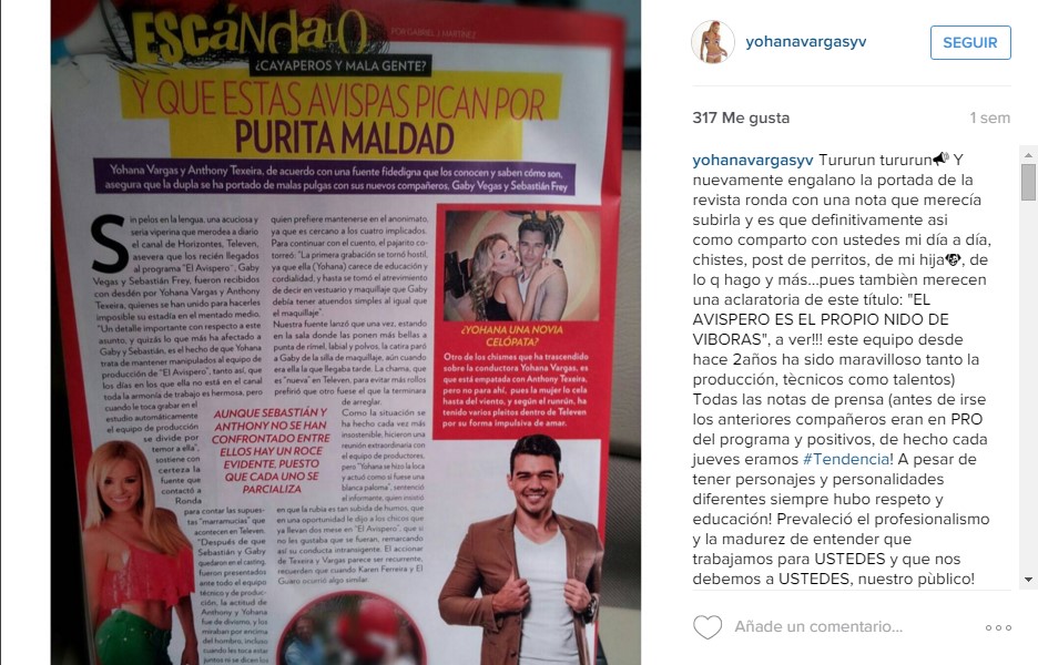 La respuesta de Yohana a una publicación en la revista Ronda.