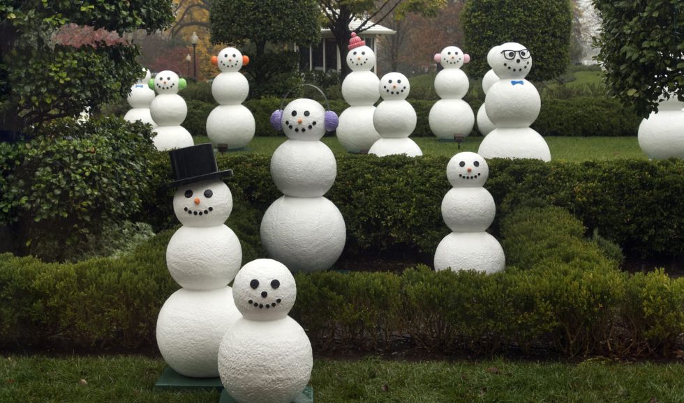 La réplica pesa casi 230 kilos, se ha confeccionado durante semanas y se sitúa a pocos metros de una máquina gigante de bolas de chicle rellena de todo tipo de dulces. Como cada año, los dos perros de aguas portugueses de la familia Obama, Bo y Sunny, tienen un protagonismo especial, en esta ocasión con dos réplicas hechas de lana blanca y negra, y situadas junto a árboles de Navidad hechos con pelotas de tenis.