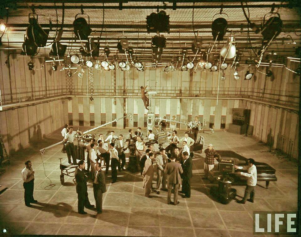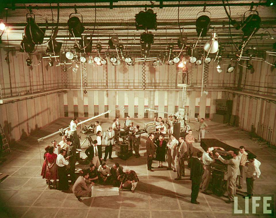 Técnicos y empleados de Radio Caracas Televisión realizando pruebas antes de su inauguración.