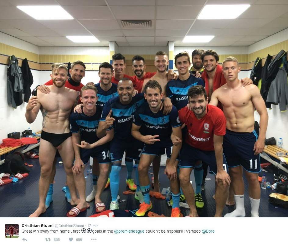 [dropcap]C[/dropcap]ristian Stuani, delantero uruguayo del Middlesbrough de la Premier League, protagonizó este domingo una divertida anécdota al subir una foto a Twitter bastante comprometedora para un compañero.