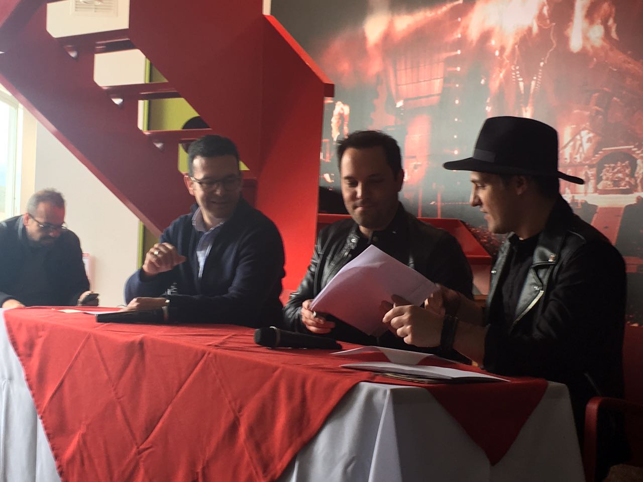 Acompañados de Guillermo Mazorra, Luis Capecchi y Andrés López, presidente del sello discográfico, su manager John Paul Joubran y periodistas de Colombia y Venezuela, los hermanos Santiago y Luigi Castillo estamparon su rúbrica en el documento que valida la representación artística internacional de tan importante compañía en el mundo de la música.