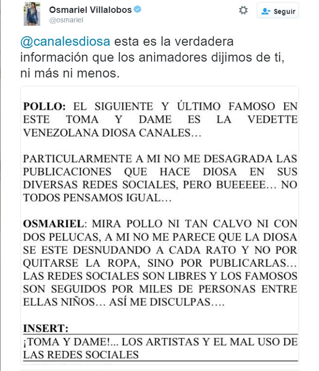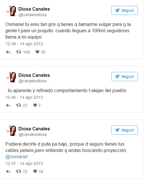 A lo que Diosa respondió, defendiéndose: «Antes yo era muy compulsiva (…) igual tu no eres nadie para decir qué te parece o no de mí».