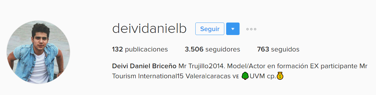 El misterioso Deivi Daniel tiene cuenta privada, pero se puede ver en su biografía que es modelo, actor y Mr Trujillo 2014.