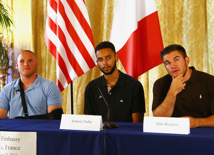 Stone era un entusiasta de las artes marciales y sirvió en las Fuerzas Aéreas americanas y Skarlatos era un miembro de la Guardia Nacional de Oregón y los tres juntos consiguieron detener al terrorista cuando salía del baño armado y preparado para matar.