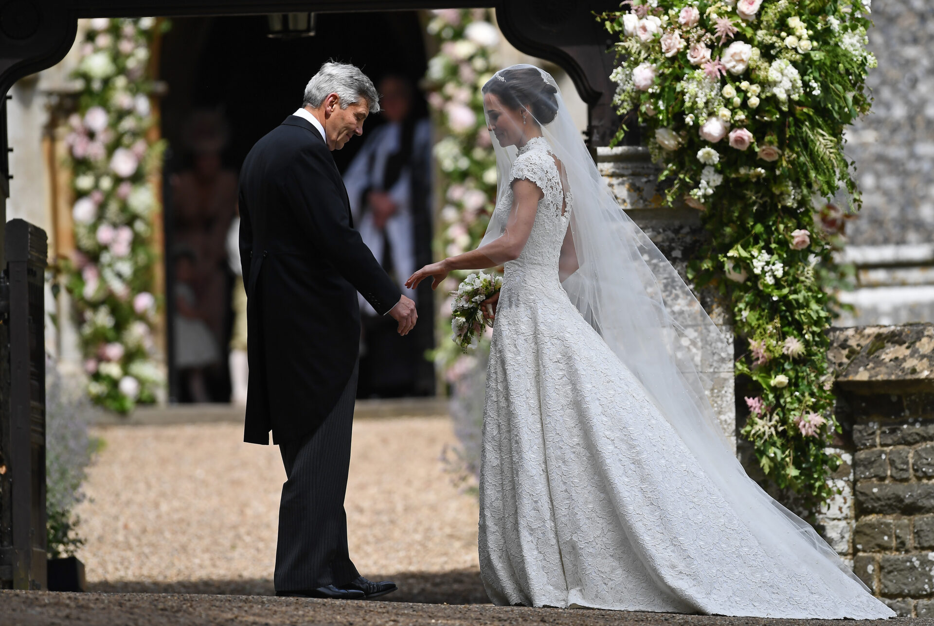 La llegada de Phillipa Middleton a la iglesia medieval de San Marcos, acompañada de su padre, Michael, en un Jaguar MK V descapotable color verde oliva de 1951, desvelaba al filo del mediodía uno de los secretos mejor guardados del enlace. El traje de la novia, un diseño con el que Giles Deacon ha querido resaltar la figura de Pippa, que ya causó sensación en la boda de los duques de Cambridge (2011) con su vestido, entonces de dama de honor, de la firma Alexander McQueen. Aquella imagen, y los interminables comentarios sobre su trasero, pusieron en el foco de la prensa a la hermana de Catalina, una licenciada en Literatura Inglesa de 33 años que básicamente se dedica a la vida social, una vez fallido el intento de rentabilizar su fama escribiendo un libro sobre buenos modales o esporádicas columnas de prensa.