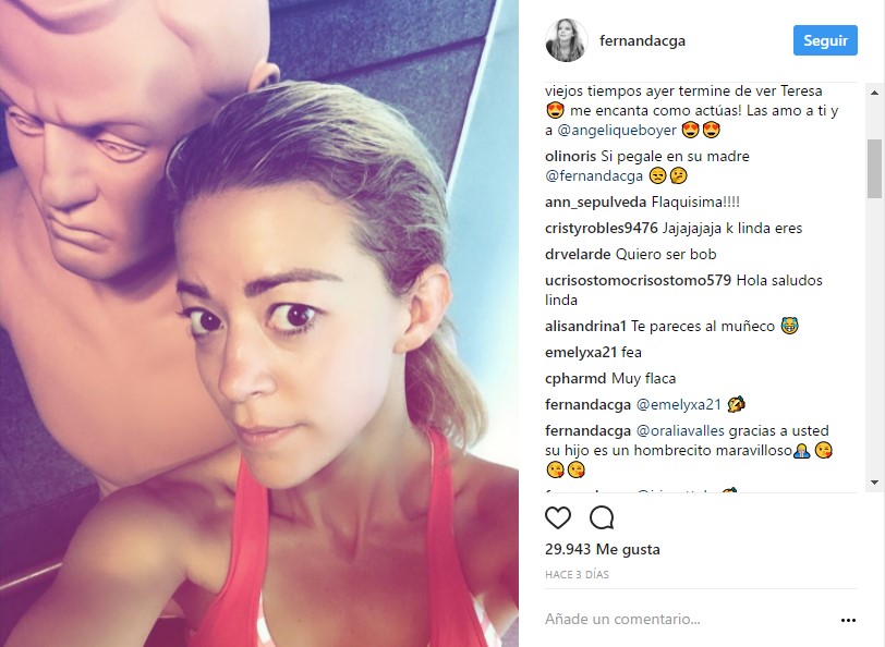 La actriz mexicana Fernanda Castillo decidió mostrarle al a sus seguidores de Instagram su rostro sin maquillaje después de su rutina de ejercicio para lucir una figura de envidia, lo que ocasionó cientos de comentarios, unos positivos, otros negativos y unos pocos usuarios preocupados por su extrema delgadez.