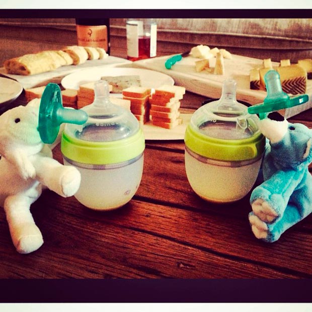 «#MarcoPerego y yo quisimos agradecer por todos sus bellos deseos y por su paciencia «, añadió. Además, la actriz compartió su primer comida del 2015, la cual estuvo hecha de caviar, paté, pan, queso y vino rosado, sin dejar de lado los biberones de los bebés.
