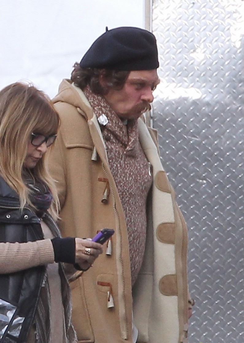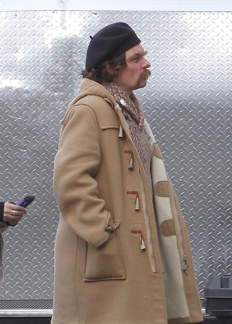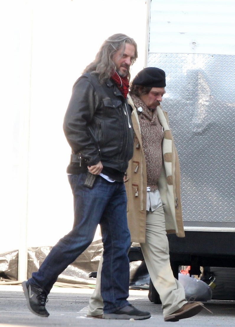 El actor fue retratado con un atuendo muy particular en el set de su nueva película, Hosers Yoga, el sábado en la ciudad de Los Ángeles. En las instantáneas aparece con una prominente panza, una boina, una máscara y enormes cejas.
