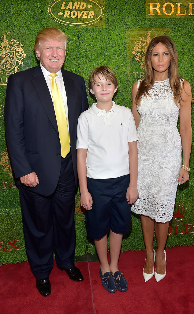 El pequeño Barron optó por lucir una camisa blanca estilo polo, con shorts azul marinos y un par de mocasines.