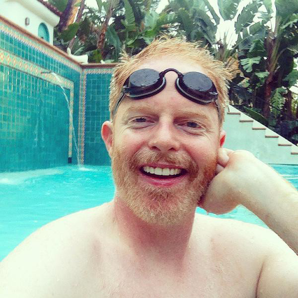 Jesse Tyler Ferguson mostrando su “look” tras no haber asistido a la ceremonia, ya que Modern Family no recibió nominaciones.