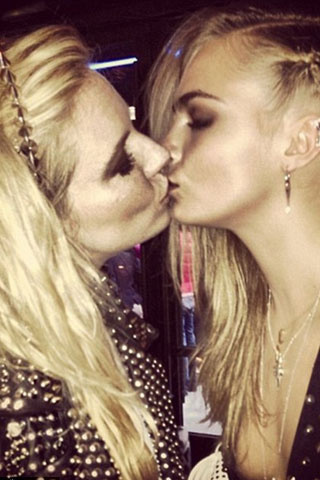 Cara y Sienna comparten grupo de amigas en Londres de ahí que cuando se encuentren en eventos sean muy cariñosas la una con la otra. Esta imagen pertenece a la gala del MET de 2013, donde la inspiración fue el punk. ¿Qué actitud más punk hay que dos chicas bien se besen y se pongan en plan sexy? Bueno, eso les parecería a ellas, al menos. Realidad: son BFFs, y más conociendo el historial amoroso de Sienna, siempre con parejas masculinas.