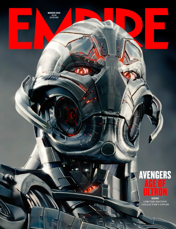 [dropcap]L[/dropcap]a película Vengadores: La era de Ultrón se estrena el próximo 30 de abril en España y, después de revelarte quién podría ser la misteriosa mujer que aparece en el tráiler, no te puedes perder las últimas portadas temáticas de Empire. Una de ellas nos muestra de cerca al villano robótico Ultrón (James Spader) -al más puro estilo «Personaje del Año» de TIME- y la otra al resto de los personajes de Marvel.