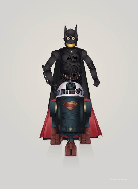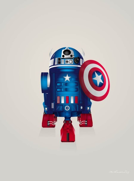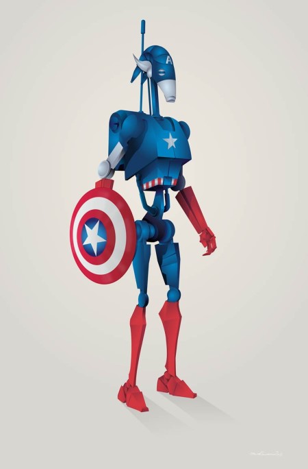 [dropcap]E[/dropcap]l ilustrador Steve Berrington ha creado una serie de ilustraciones en las que convierte a algunos de los androides de Star Wars en superhéroes.