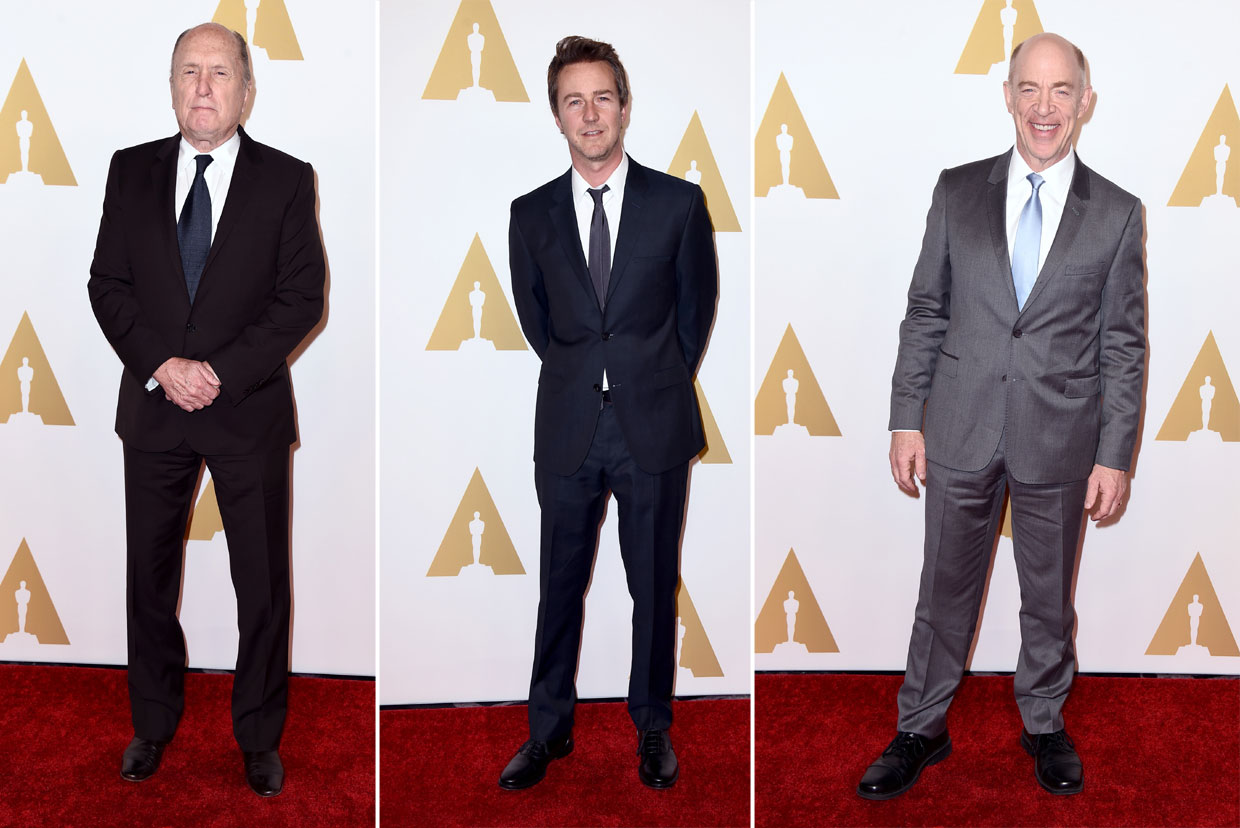 Robert Duvall, Edward Norton y J.K. Simmons, nominados a mejor actor de reparto. Duvall no quiso explicar qué sentiría en caso de hacerse con el Óscar, porque «no va a ser el caso». «No voy a ganar, pero está bien», comentó sonriente, sabedor de que el nombre con mayor número de papeletas es Simmons por Whiplash.