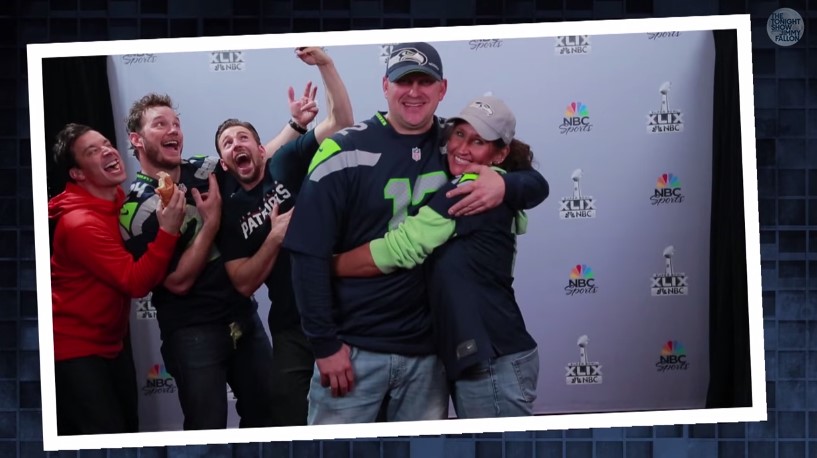 Ambos actores apostaron en el Super Bowl, y se juntaron nada más y nada menos que con Jimmy Fallon para protagonizar una de las secciones más divertidas del «Tonight Show«: La «photobomb» de famosos.