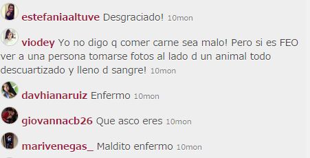 Se trata del sacrificio de una res, en la imagen Figueroa posa al lado de animal degollado y sin piel en una escena que alguno de sus seguidores no tardaron en condenar, bien sea por vegetarianos, por dantesca o simplemente por criticar.