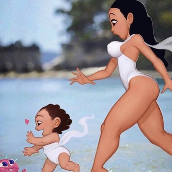 El dibujo claramente está basado en una serie de fotos que Kim compartió de sus vacaciones en México a principios de año. En ese momento, la estrella mostró su hermosa silueta mientras cuidaba a Nori en la arena.