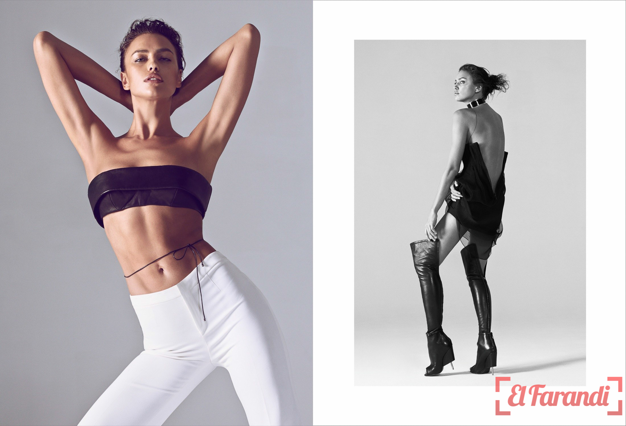 En concreto, en la portada de Harper’s Bazaar, Irina aparece con un diseño corto con el que se decanta por la combinación black & white, un vestido muy ajustado con escote recto y dos tirantes entrecruzados con el que se da la sensación de que está compuesto por tiras de papel. Pero eso da igual, porque le pongan como le pongan, con cualquier material o forma, Irina está eternamente sexy. En definitiva y ya para resumir en tan solo unas palabras: Irina reencarna la sensualidad infinita.