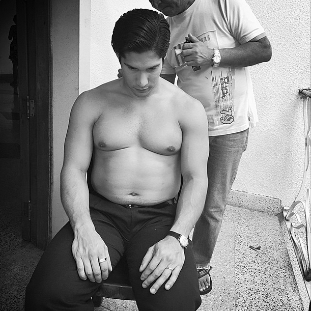 En la imagen colocó lo siguiente mensaje: ««El compromiso» Todo actor al asumir un papel tan importante para una película debe llegar más allá de un parlamento, una emoción o una situación. El físico debe comprometerse con la realidad del personaje y por mi parte no dude ni un segundo en olvidarme un ratico del deporte y el fitness para asumir un nuevo reto en mi vida. Reto que agradezco a Dios, a #FelipePirela por existir y al maestro Diego Risquez por la oportunidad. Ya estamos en la 3era semana de rodaje, solo faltan 5 más y cumplimos el cometido!!!! #ElMalquerido#FelipePirela2015«