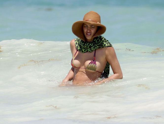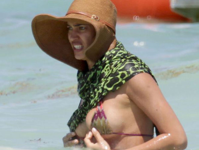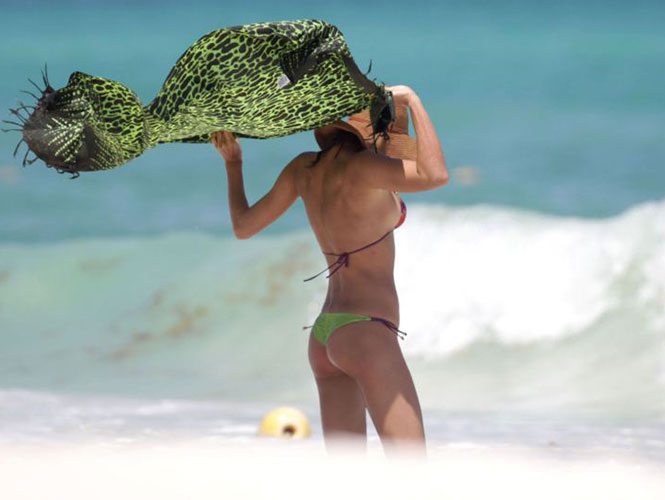 Obviamente, la top model fue captada en bikini y con un pareo en Playa del Carmen, mientras disfrutaba del mar, se doraba la piel y se cubría del sol con un sombrero.