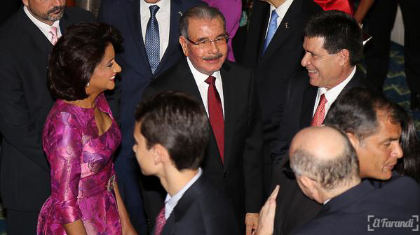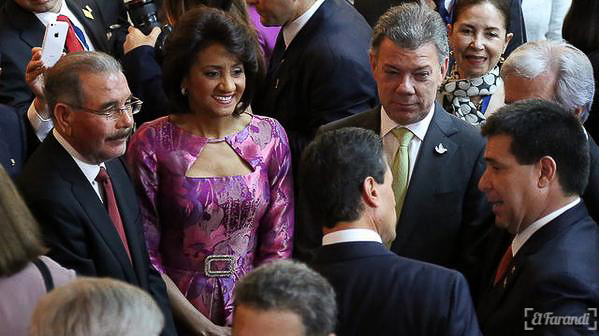 La primera dama Cándida Montilla de Medina, de República Dominicana, fue otra que utilizó un look demasiado señorial. El tejido muy estructurado de su vestido, el estampado de flores y los detalles de brillo no combinaron con su juventud.