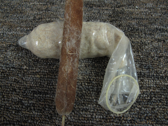 Será mucho más fácil pescar la cena si colocas algo dentro del condón y lo atas a un pedazo de cuerda.