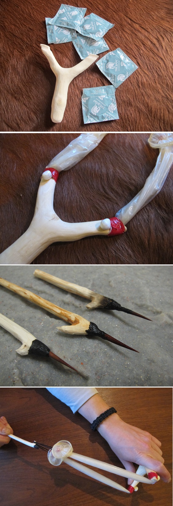 Puedes improvisar una tira con varios condones y algunos pedazos de madera. Sólo falta afinar la puntería y listo.