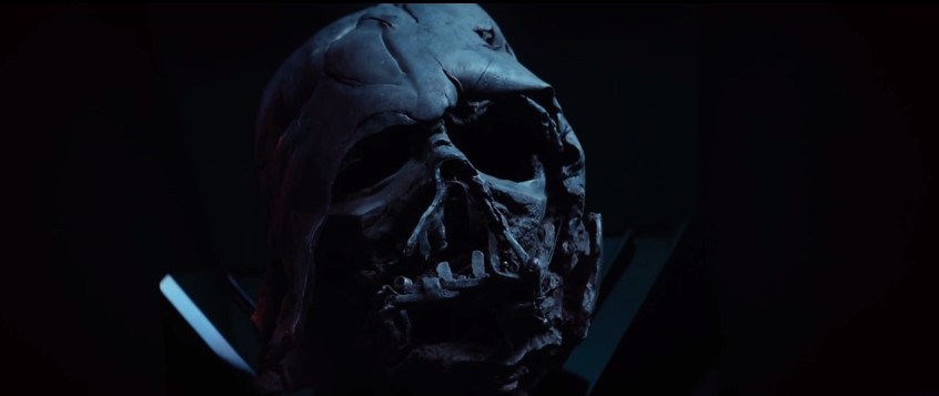 Si el Destructor Imperial destruido nos emocionó, no podemos describir lo que sentimos cuando vimos el casco chamuscado y desfigurado de Darth Vader. Alguien lo sostiene en las manos, ¿quién será?.