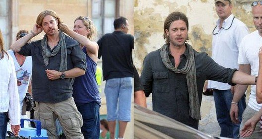 Brad Pitt y su doble en ‘Guerra Mundial Z‘ (2013)