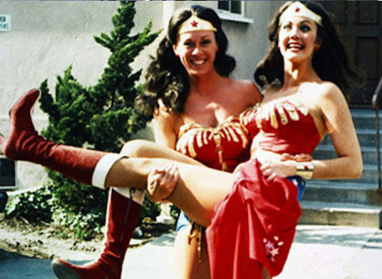 Lynda Carter y su doble Jeannie Epper en ‘Las nuevas aventuras de Wonder Woman‘ (1975-1979)