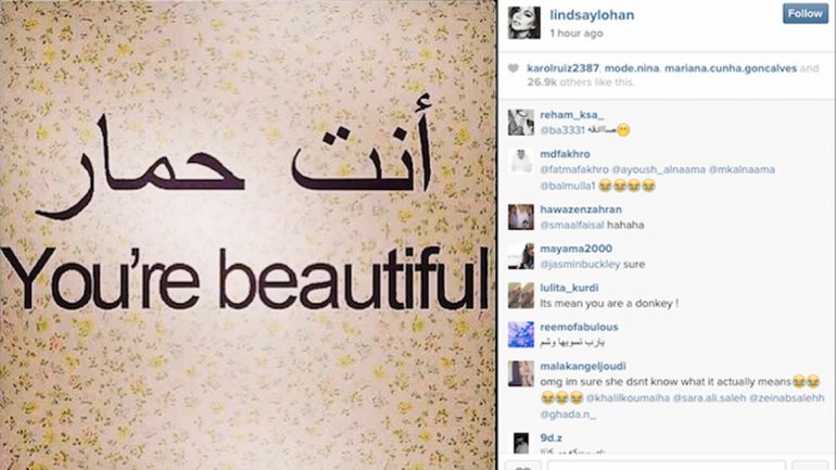 En esta oportunidad, compartió en Instagram una imagen de una frase árabe que subtituló con su supuesta traducción al inglés: «You’re beautiful» (Eres hermosa). En cambio, la expresión significa: «Eres un burro».