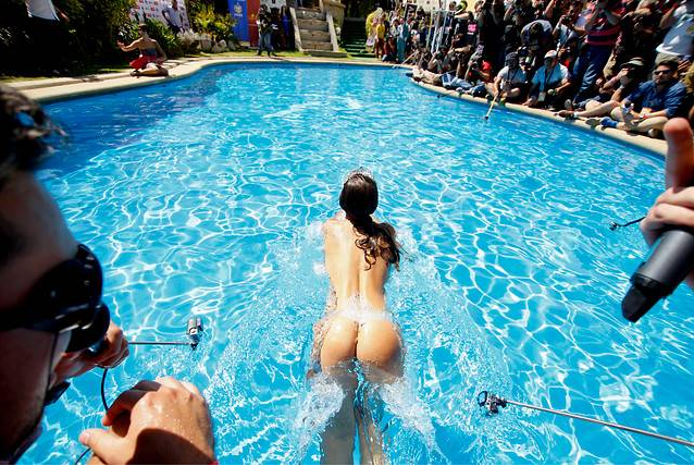 La exquisita y sensual Miss Viña 2015, se dio un relajante baño de piscina, culminando su reinado con un excelente cuerpo y una contagiosa sonrisa, la bella Miss cautivó a todos los presentes, quienes no perdieron el momento para fotografiarla. La encantadora y sensual miss erealizó una demostración de sus grandes dotes de nadadora profesional y evidentemente calmó la calentura de ella y el público presente, dándose un perfecto baño bajo un sol clemente. A continuación, dejamos las palabras de lado, y mostramos las espectaculares fotos de la Miss Viña 2015.
