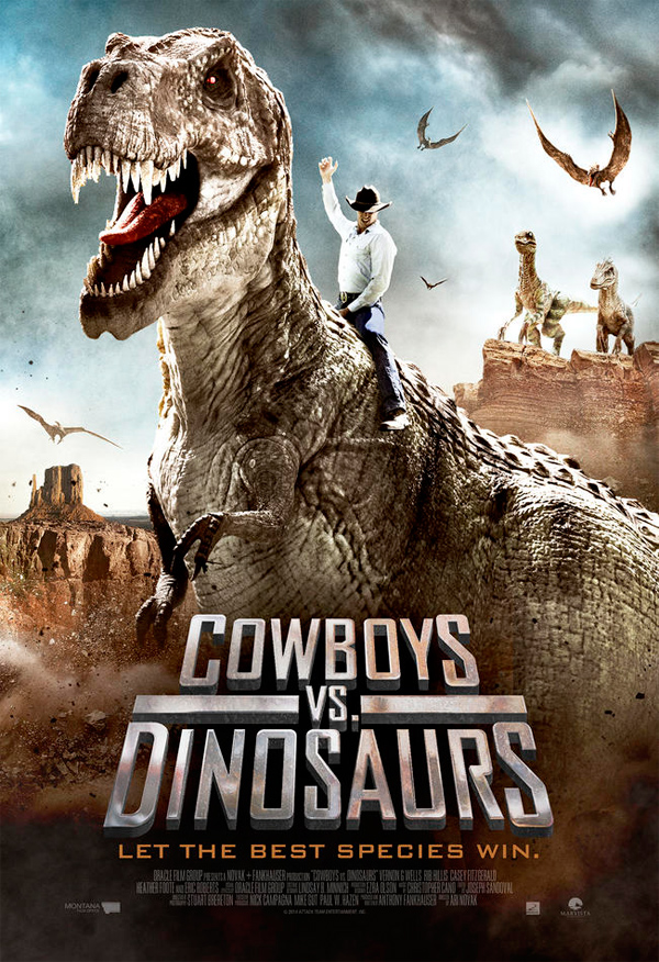 [dropcap]J[/dropcap]urassic World llegará a los cines el 12 de junio, pero antes hará lo propio otra cinta de Dinosaurios que tiene mucho que envidiarle a la de Chris Pratt en cuanto a calidad y presupuestos, pero poco en cuanto a diversión y entretenimiento. Cowboys Vs Dinosaurs verá la luz en plataformas de vídeo bajo demanda el 19 de mayo y aquí tienes su primer póster y tráiler.