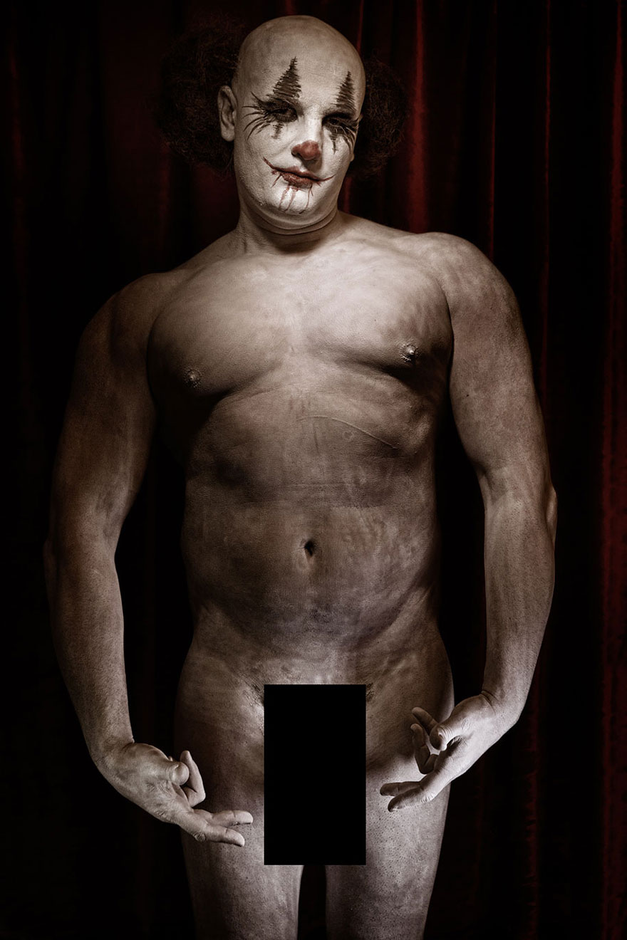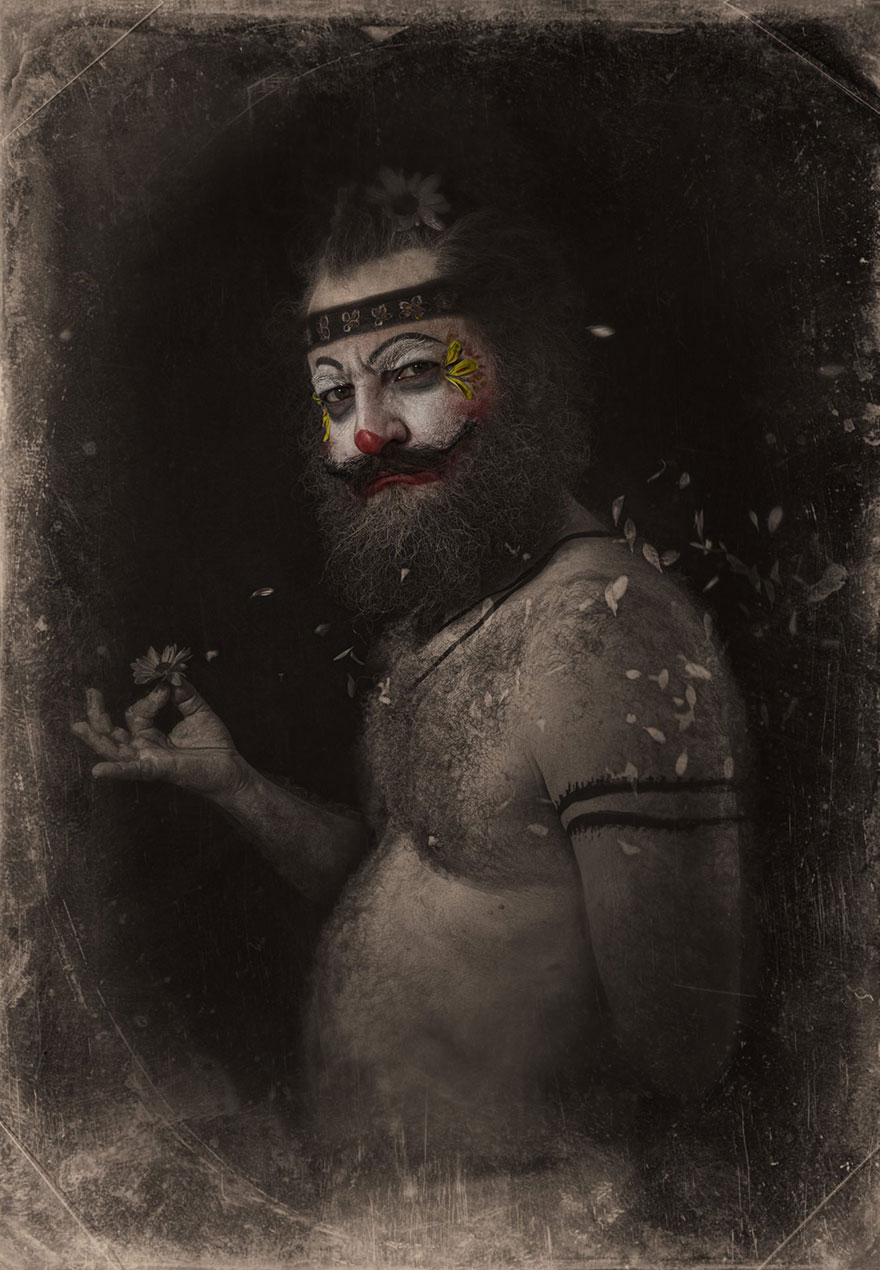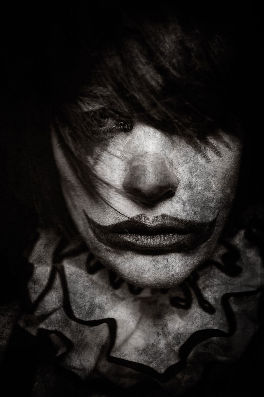 [dropcap]C[/dropcap]lownville es el título de la pesadilla fotográfica del francés Eolo Perfido, mostrando grotescos retratos de payasos terroríficos. Eolo empezó a dedicarse a la fotografía a los 28 años (ahora tiene 42), y dice que lo que le inspiró para esta serie fueron las estrellas del cine mudo, como Buster Keaton y Charlie Chaplin, quienes se veían forzados a exagerar sus emociones al ser incapaces de hablar en la pantalla.