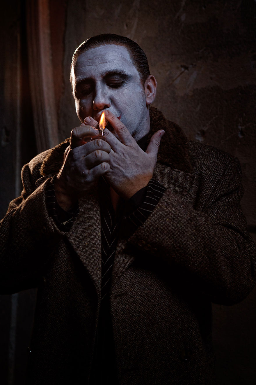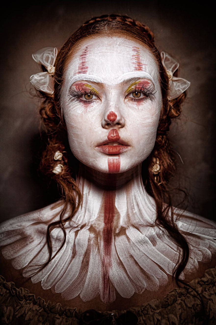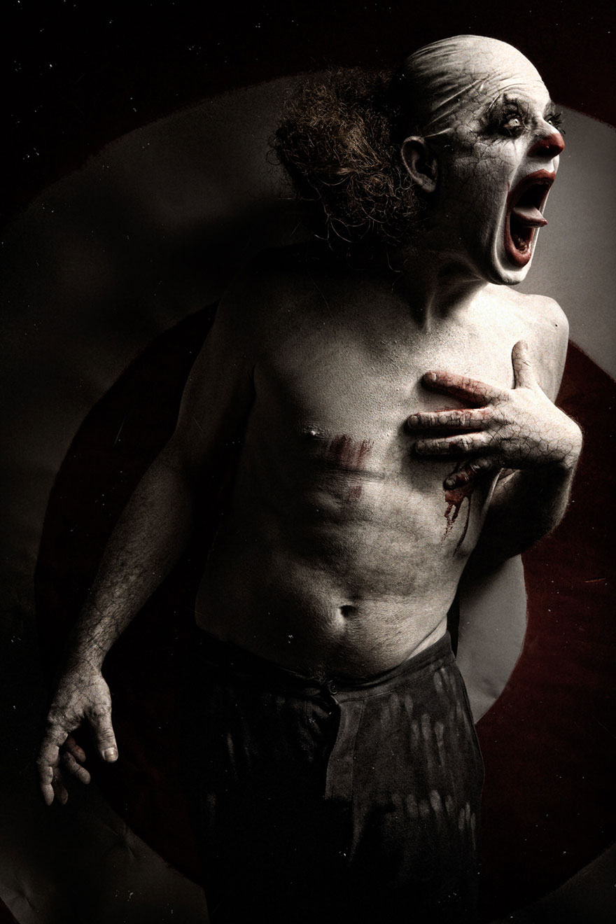[dropcap]C[/dropcap]lownville es el título de la pesadilla fotográfica del francés Eolo Perfido, mostrando grotescos retratos de payasos terroríficos. Eolo empezó a dedicarse a la fotografía a los 28 años (ahora tiene 42), y dice que lo que le inspiró para esta serie fueron las estrellas del cine mudo, como Buster Keaton y Charlie Chaplin, quienes se veían forzados a exagerar sus emociones al ser incapaces de hablar en la pantalla.