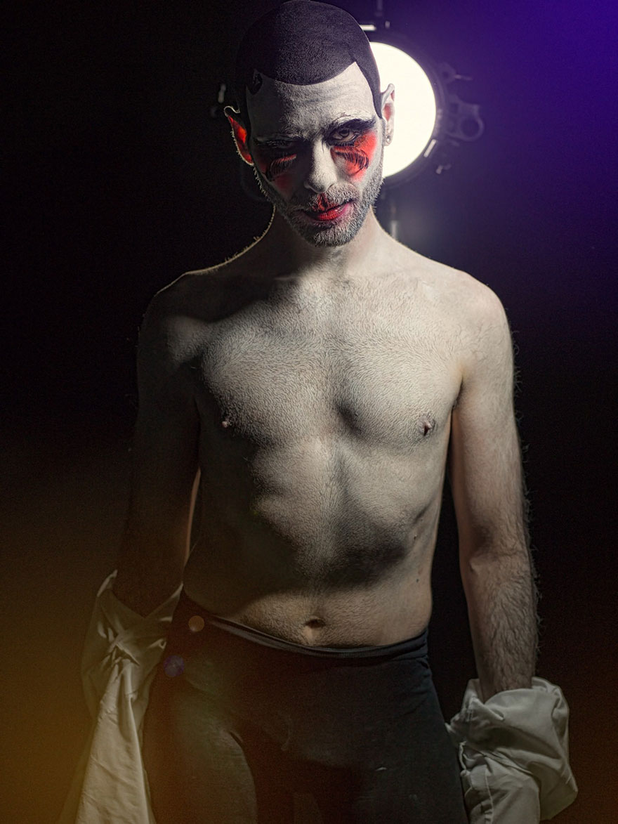 Eolo Perfido vive en Italia en la actualidad. Sus trabajos han aparecido en revistas como NY Times, Vogue Russia y muchas más. La maquilladora de Clownville (payasos) fue Valeria Orlando.