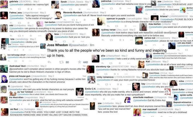 Sin embargo, el papel de la Viuda Negra (Scarlett Johanson) en su última película ha indignado a muchos fans, que han bombardeado el Twitter de Joss Whedon a base de críticas e insultos.
