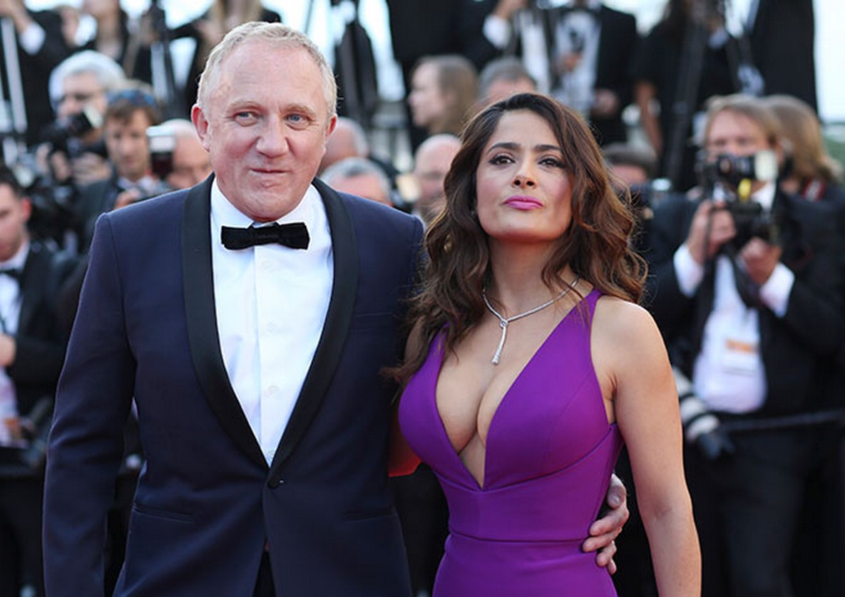 Salma desfiló del brazo de su marido, el empresario francés François-Henri Pinault, con un vestido color violeta de gran escote, peinada con cabellos ligeramente ondulados, los labios pintados de rosa y un bolso plateado.