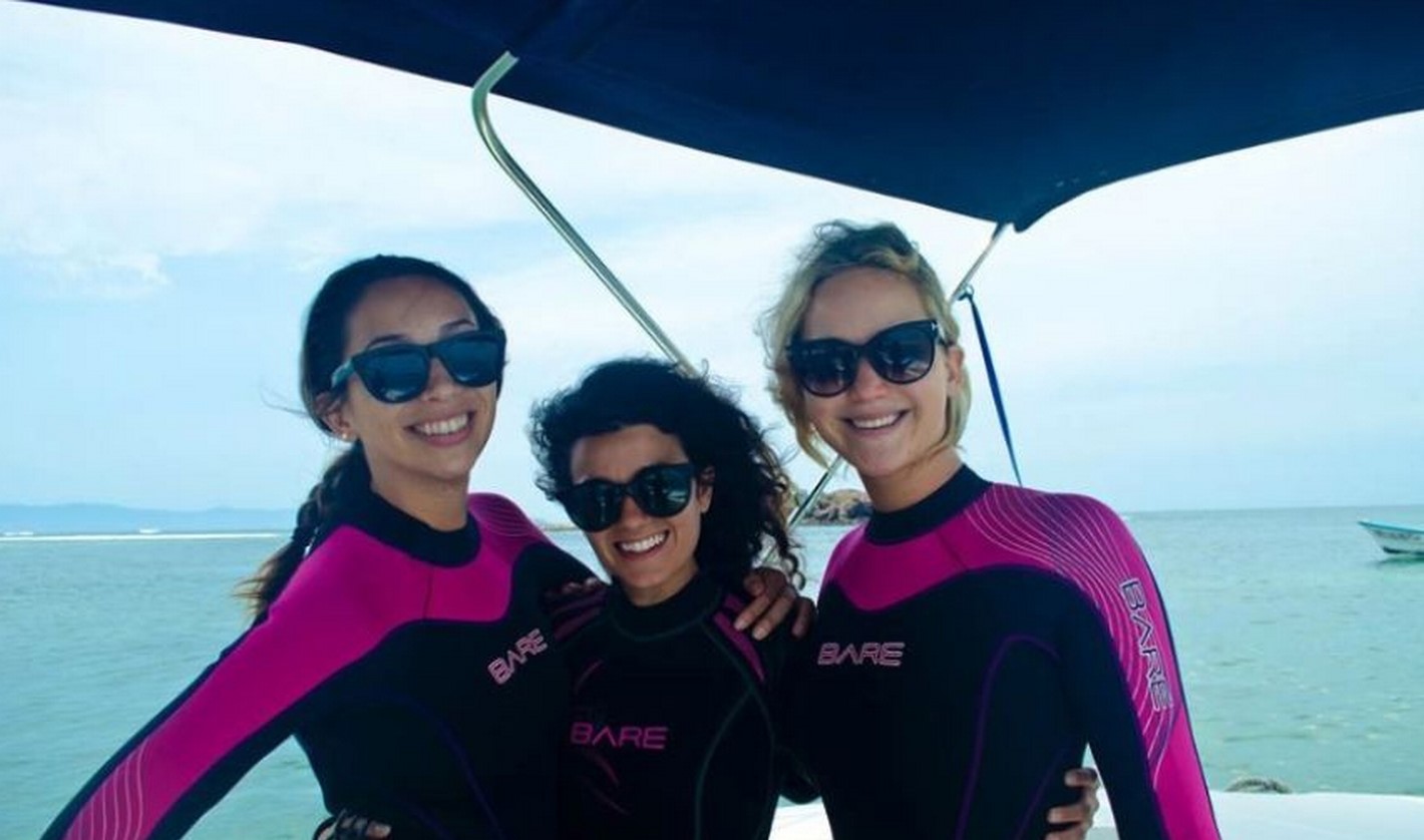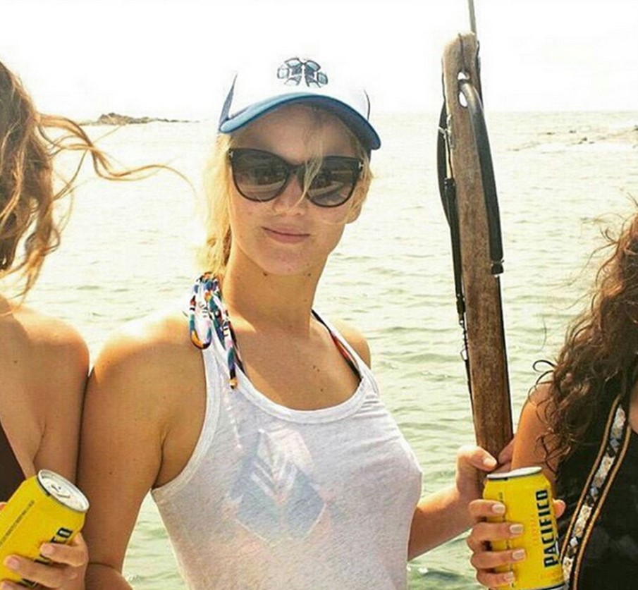 Una compañía especializada en pesca submarina publicó en su página de Facebook las imágenes del momento en que la intérprete de 24 años viste un traje para bucear y disfruta con sus amigos unas cervezas.