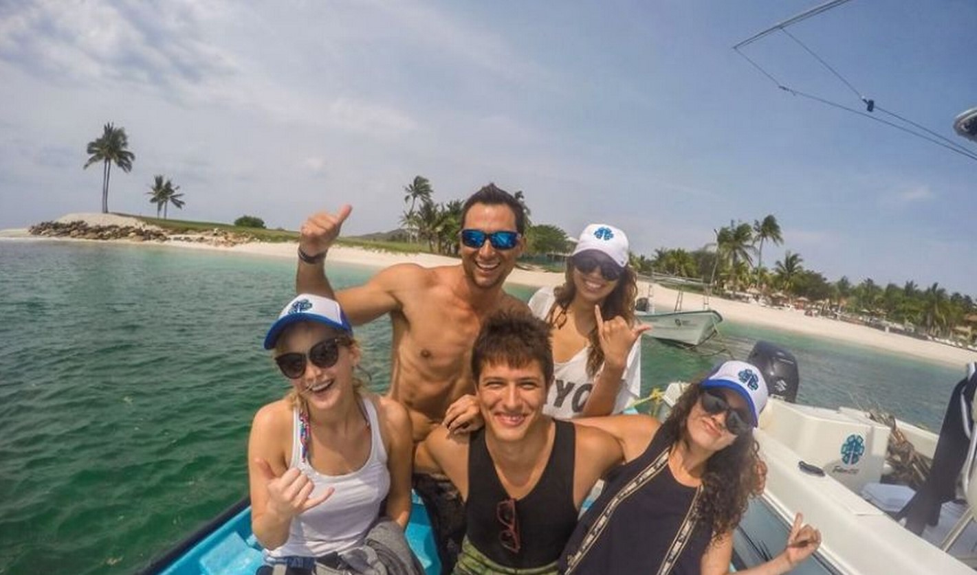 Las fotografías muestran a la protagonista de Los Juegos del Hambre disfrutando las aguas de la Riviera Nayarit en compañía de un grupo de personas.