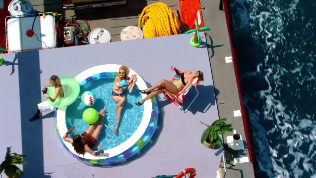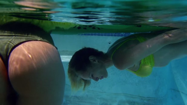 La siguiente imagen se abre la puerta del ascensor y solo aparece Rihanna, la mujer ha sido secuestrada y llevada a una especie de granero donde varias mujeres, secuaces de Rihanna, cuelgan a la mujer por los pies completamente desnuda, le tapan la boca con una especie de aparato de oro y la balancean de un lado para otro.