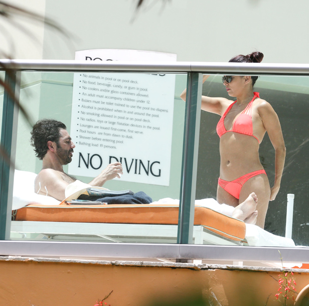 Hace unos días fueron vistos haciendo compras en Bal Harbour y la tarde de este miércoles disfrutando del cálido clima de Miami en la alberca de su hotel.