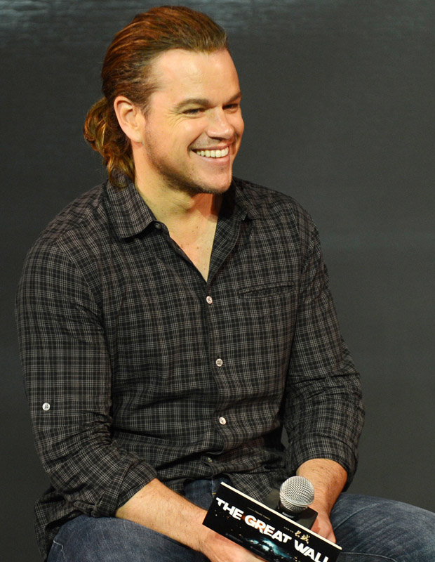 [dropcap]E[/dropcap]l actor de 44 años apareció en la conferencia de prensa de su próxima película “The Great Wall” en Beijing con una cola de caballo. Matt Damon, a quien normalmente vemos con el pelo corto como en su película “Elysium”, lucía muy guapo y relajado junto a sus co-estrellas Andy Lau, Zhang Yimou, Jing Tian y Pedro Pascal.