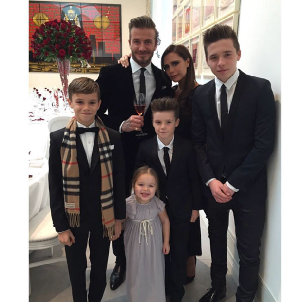 Victoria fue la primera en publicar una foto de toda la familia, acompañada de un mensaje para su esposo: » Feliz aniversario. Te amo demasiado. Estoy muy orgullosa de nuestra bella familia», dijo en la imagen donde se ve a Brooklyn, de 16, Romeo, de 12, Cruz, de 10 y la pequeña harper de 3 años.