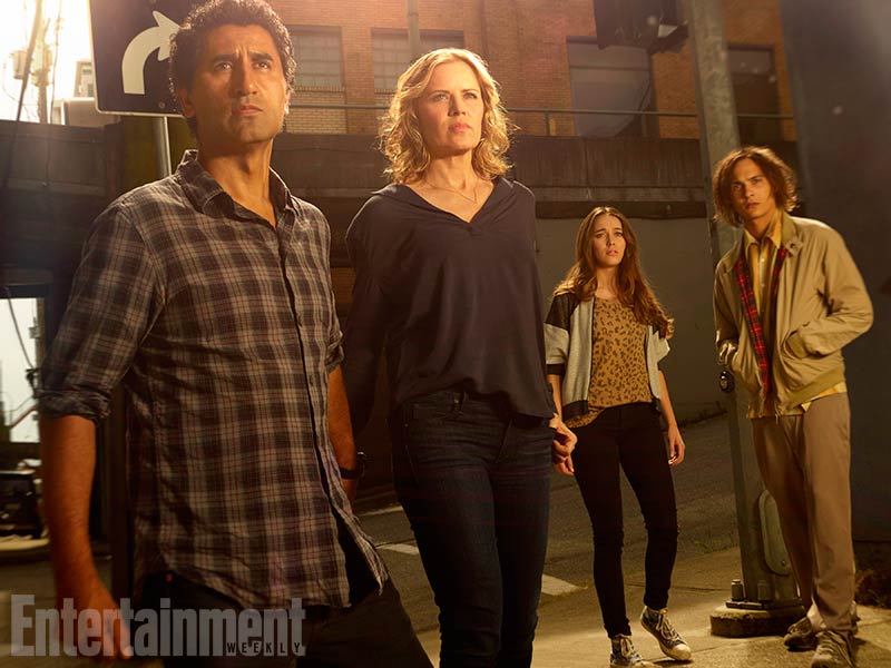 En la imagen publicada por EW, se puede ver a Travis (Cliff Curtis) y Madison (Kim Dickens) junto sus dos hijos Alicia (Alycia Debnam – Carey) y Nick (Frank Dillane) un tanto preocupados ante algo que están viendo.