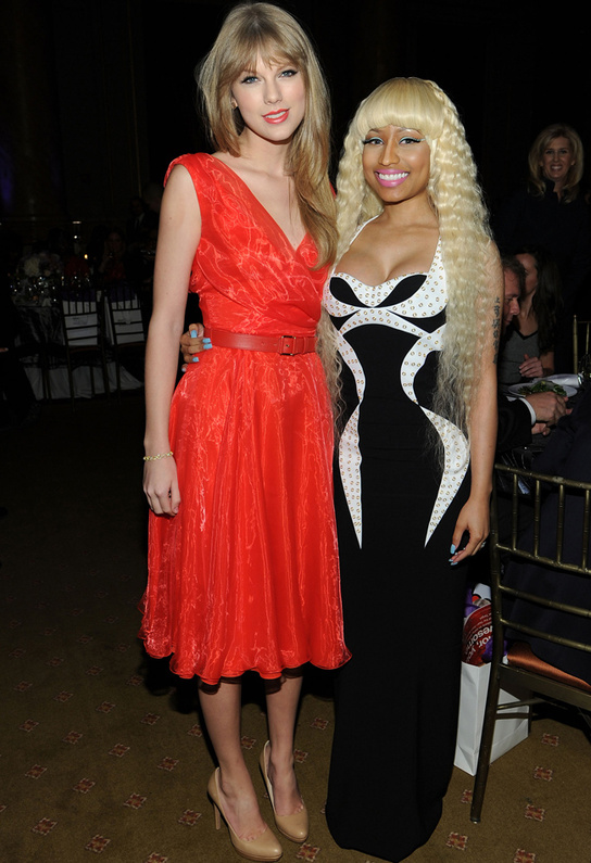 Taylor Swift que sí estaba nominada en esta categoría -la única mujer, junto a Beyoncé- se lo tomó como un ataque personal y le respondió con dos mensajes recordándole que ella siempre la había querido y respetado y que no parecía propio de ella incitar a la mujeres a competir entre sí. Por último la invitó a subir con ella al escenario en caso de que se llevase la estatuilla: «siempre serás bienvenida en una escenario en el que yo esté».