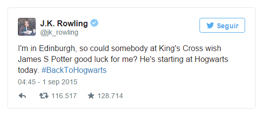 [dropcap]S[/dropcap]e trata de la foto de regreso a clases que a los fans de Harry Potter no les importaría ver publicada en Facebook. Los aficionados de la saga se emocionaron el martes cuando la autora JK Rowling tuiteó que era un día especial en la familia Potter.