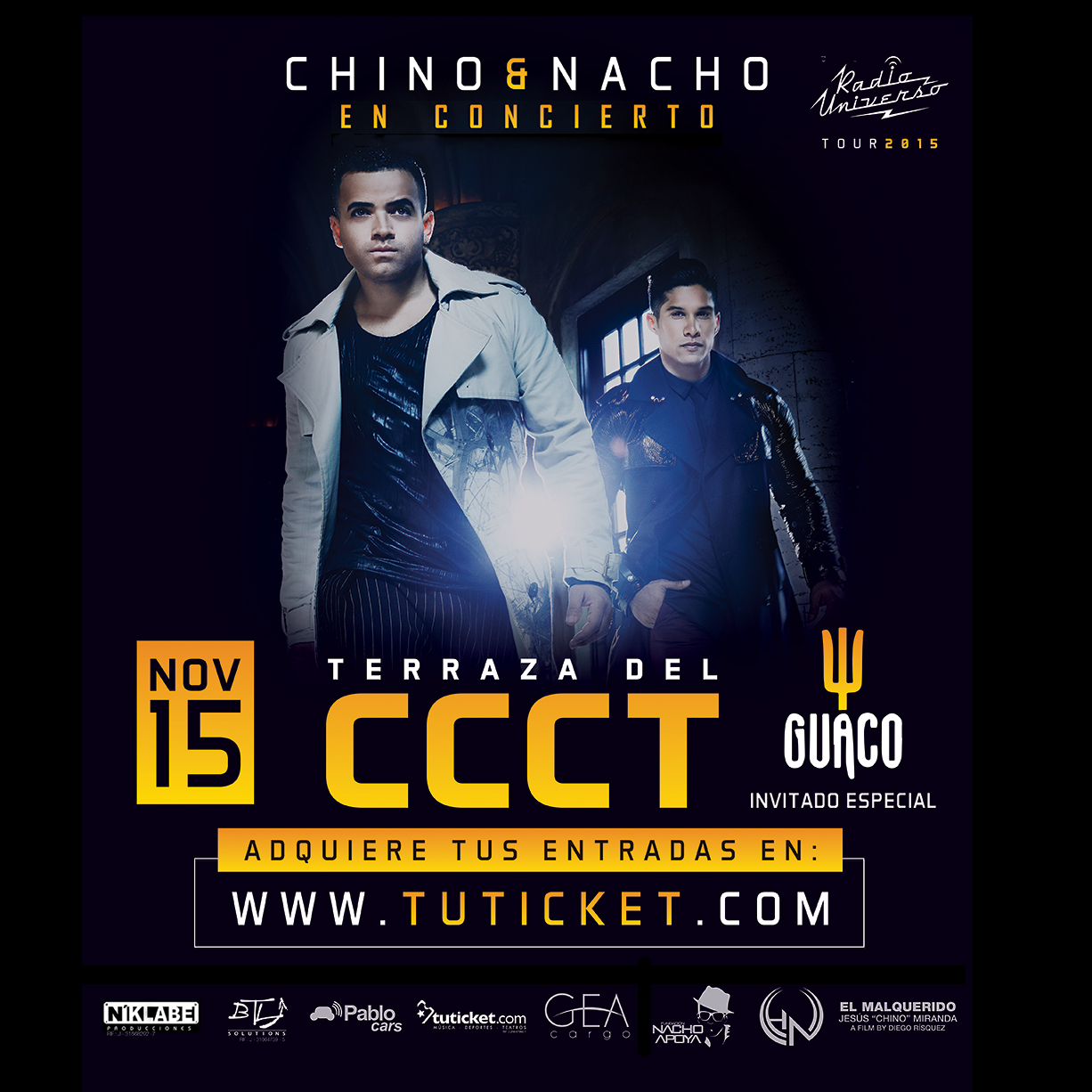 [dropcap]L[/dropcap]a expectativa del público en cuanto a la llegada del “Radio Universo Tour 2015” de Chino & Nacho a Caracas sigue aumentando. Los seguidores del dúo se preparan para vivir una experiencia única el 15 de noviembre en la terraza del CCCT, con un show cargado de muchas sorpresas, bajo el sello de Producciones N’Klabe.
